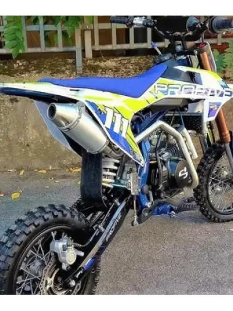 ***mezzo non omologato per la circolazione stradale*** NUOVA PIT BIKE 140cc AZIENDA PROFESSIONALE, DA ANNI SPECIALIZZATA IN PIT BIKE NEL SETTORE RACING DEL MONDO CROSS E MOTARD. LA KF2 140cc PROFESSIONALE E' DISPONIBILE PRESSO NOSTRA SEDE A SOLI 1350 EURO. MOTORE Motore YX 140cc 4t monocilindrico orizzontale, due valvole Raffreddamento aria/olio con radiatore olio Frizione 5 dischi a bagno d'olio Alessaggio e Corsa 56×57 Cambio manuale 4 velocità Carburatore Mikuni VM22 (26mm) Avviamento a Kick Starter CICLISTICA Telaio perimetrale a traliccio in acciaio Telaietto posteriore scomponibile Freni idraulici a disco Dischi freno 220mm - 190mm Pinza anteriore a doppio pistoncino Piastre di sterzo 45/48 Manubrio Fatbar 28mm SOSPENSIONI Forcelle rovesciate 770mm 45/48 Mono posteriore 334mm regolabile in precarico PARTICOLARI Nuove plastiche Nuova sella ergonomica antistrappo e antiscivolo Cerchi in acciaio Gomme cross SPEDIAMO LE NOSTRE MOTO GIA' MONTATE E PRONTE A CORRERE IN TUTTA ITALIA, ISOLE COMPRESE !!!