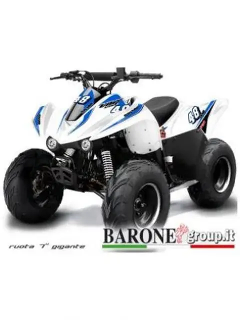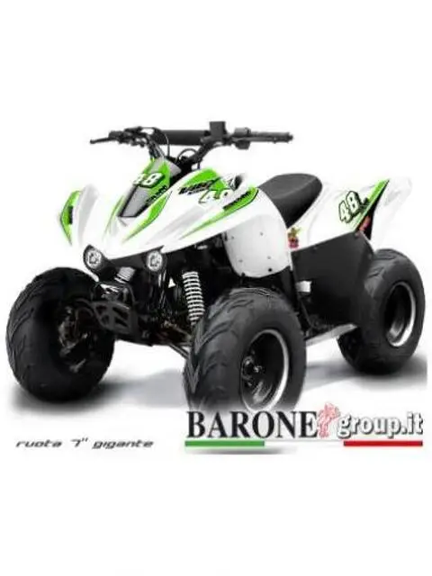 New Quad lem Big foot 110cc Quad Lem Big foot 110cc, il quad sportivo con ruota 7'', scarico sportivo, regolatore di velocità. Alta qualità ed immenso design Scheda Tecnica motore 4 tempi monocilindrico Cilindrata 110cc Alimentazione carburatore Capacità serbatoio 2,0lt Carburante benzina verde Accensione CDI Avviamento elettrico Tipo di cambio automatico Trasmissione catena Dimensioni moto 135x70x65 altezza sella Peso medio 75kg Cerchi alluminio Pneumatici da 7'' Freno anteriore a tamburo Freno posteriore a disco idraulico accessori tuning compresi: - SCARICO SPORTIVO - REGOLATORE DI VELOCITA’ - DISPOSITIVO DI SPEGNIMENTO DEL MINIQUAD IN CASO DI CADUTA. - CARTER DI PROTEZIONE SUL TOTALE GIRO CATENA ACCENSIONE ELETTRICA - TELAIO COMPLETAMENE RINFORZATO - FILTRO ARIA SPORTIVO RACING - BLOCCHETTO START CON DOPPIA CHIAVE E DOPPIO TELECOMANDO - RUOTE TACCHETTATE - SOSPENSIONI RINFORZATE Questo veicolo non è omologato alla circolazione stradale, ma va usato esclusivamente su spazi privati o su piste circuiti riservati. Tutte le nostre Moto o quad non sono giocattoli, ma articoli sportivi. Sono costruite rispettando le normative CE e ISO9000, vengono sottoposte a continui controlli di qualità . NB. Accessori tuning come doppio scarico sportivo e paramani sono disponibili su richiesta Compra solo il MEGLIO La sicurezza prima di tutto. I nostri quad sono i più SICURI in commercio,poichè¨ sono gli unici a possedere: Motore 4 tempi 110cc Il Motore 4 tempi ha una concezione completamente diversa dal tradizionale motore 2 tempi. La resa e la durata del motore sono pressocchè illimitate, prestazioni ottime! Accensione ELETTRICA Il sistema d'accensione comodo, immediato, senza sforzi. Carburatore sport Perfettamente tarato e funzionante. Solo la Barone Group S.A.S garantisce un controllo accurato sul carburatore, evitando le solite problematiche e garantendo un'ottima efficenza Freno a disco anteriore e posteriore Rinforzato, efficente e sicuro, come tutto il resto della componentistica. Garanzia ITALIA 24 MESI Perchè non scegliere subito il meglio? Il prodotto che state visualizzando è il risultato di continue ricerche tecniche, meccainche ed estetiche. Se quello che cerchi è la qualità con ricambi SEMPRE a tua disposizione, la risposta è una sola: Barone Group S.A.S Nota Bene: Prima di qualsiasi utilizzo del mezzo su strada verificare ed eventualmente stringere tutti i bulloni e i raggi delle ruote. L'Azienda declina ogni responsabilitè per qualsiasi tipo di danni a cose e/o persone.