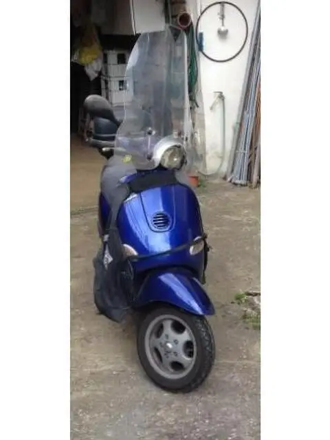 Vespa ET4 150 colore blu unico proprietario 62.500 km anno 2005 + bauletto + copri gambe tucano + doppio parabrezza + blocca disco sella leggermente rovinata davanti, prezzo offerta zona selva candida , casalotti ,palmarola