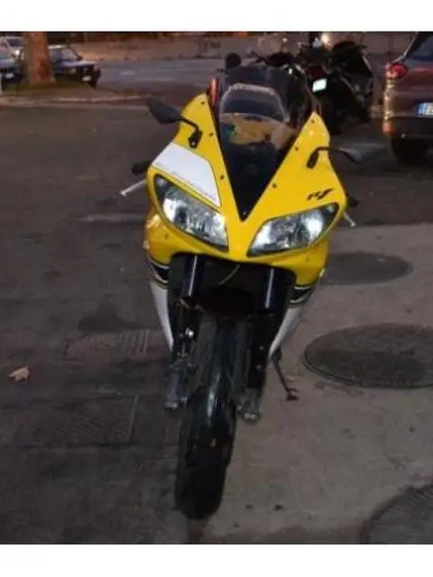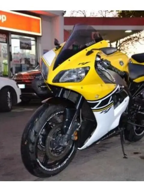 YAMAHA YZF R1 Lug. 2oo3 Laguna Seca Caratteristiche del veicolo Chilometraggio: 49000 Immatricolazione: 07/2003 Tipo di veicolo: usato Carburante: Benzina Potenza: 112 kW / 152 CV Tipo di cambio: Manuale Marce:6 Colore esterno: Giallo Colore interno: Garanzia: 12 concessionario Carrozzeria: Moto - Supersportiva Cilindrata: 1000 Cilindri: 4 Porte: Posti: 2 Equipaggiamenti: Descrizione fornita dal venditore: Yamaha YZF R-1, 07/2003, Km 49.000, Ottime condizioni, Replica Laguna Seca su carena originale, Tubi freno in treccia, Frecce micro in carena anteriori e a led posteriori, Plexiglass fumè, Specchi piccoli carbon look, Portatarga in alluminio, Pedane arretrate ValterMoto, Antifurto elettronico, Tappo serbatoio aeronautico EvoTech, Un anno di garanzia, finanziabile. Permute usato con usato, Acquistiamo Con Pagamento in Contanti: Moto, Scooter, Auto (anche grosse cilindrate) e Suv. MOTO WEB ROMA S.R.L. Viale Jonio n.275 H/I Tel. e Fax: 06/87193698 Cell. 393.14.63.116 Cell. 334. 39.89.259 Lun/Ven 9/19 Sab. 9/13